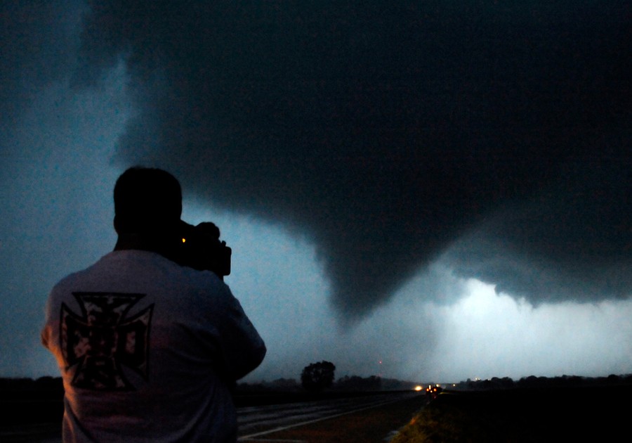 Read moreStorm chaser and photographer Brad Mack shoots a tornado as it makes its way over the 135 freeway near Moundridge, Kansas, during the third day of severe weather and multiple tornado sightings, on April 14, 2012. #