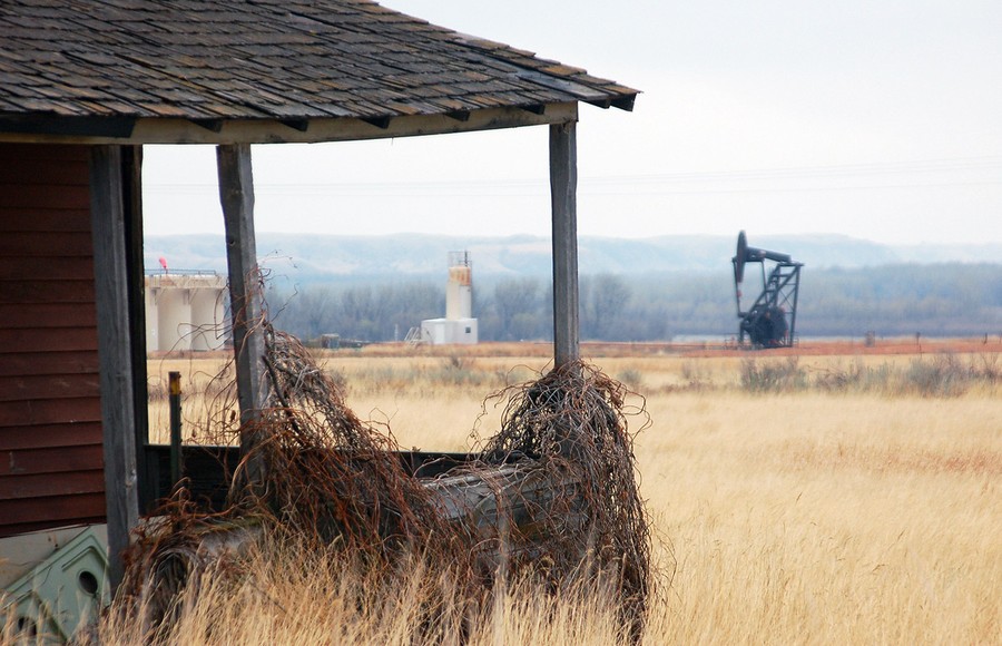 Read moreA nodding donkey pump extracts oil from the earth at an abandoned farm near the old ghost town of Dore, North Dakota, on April 19, 2012. Dore has seen a rebirth with booming oil activity in western North Dakota. #