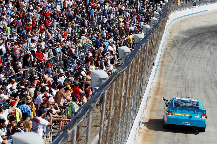 Read moreJimmie Johnson, driver of the #48 Lowe's Madagascar Chevrolet, celebrates with the checkered flag after winning the NASCAR Sprint Cup Series FedEx 400 benefiting Autism Speaks at Dover International Speedway on June 3, 2012 in Dover, Delaware. #
