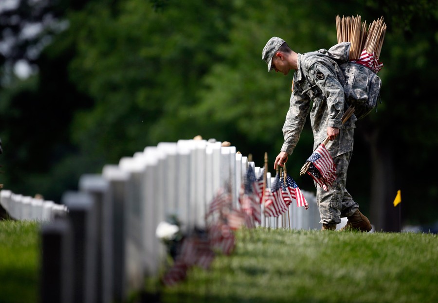 Read moreA member of the U.S. Army Old Guard places a flag at one of the over 220,000 graves of fallen U.S. military service members buried at Arlington National Cemetery, in Virginia, on May 24, 2012. #
