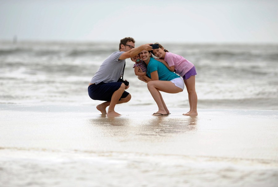 Read moreThe Bernacchi family from left; Joel Bernacchi, Liliana Bernacchi, Tiffany Bernacchi and Olivia Clark, take a photo along the beach as Hurricane Isaac approaches Gulfport, Mississippi, on August 28, 2012. #