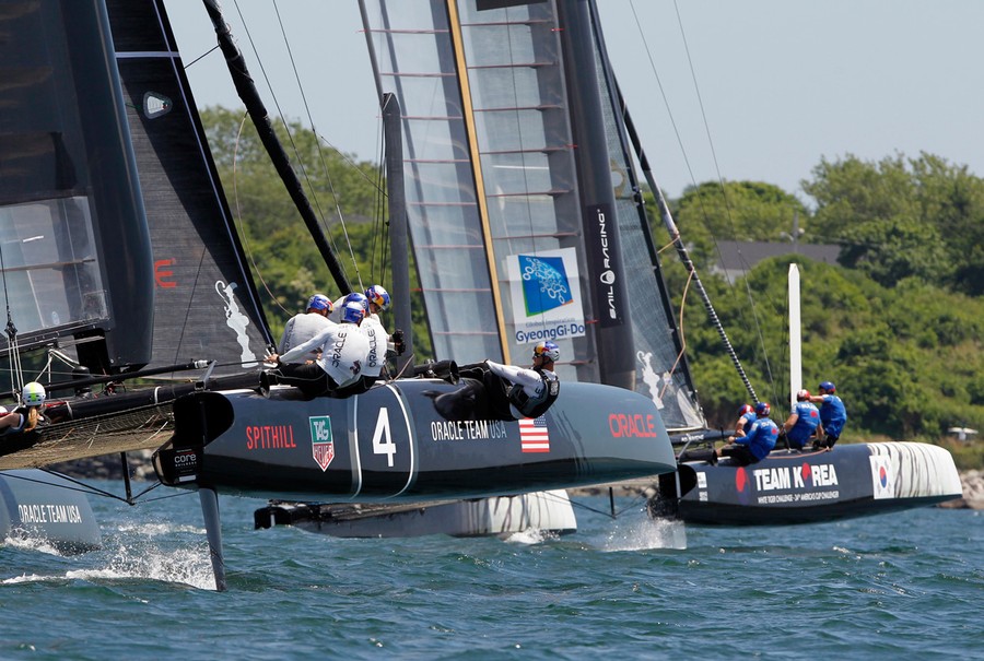 Read moreOracle Team USA Spithill (left) sails against Team Korea during the quarter-finals of the America's Cup World Series Newport Racing Championship in Newport, Rhode Island, on June 28, 2012. #