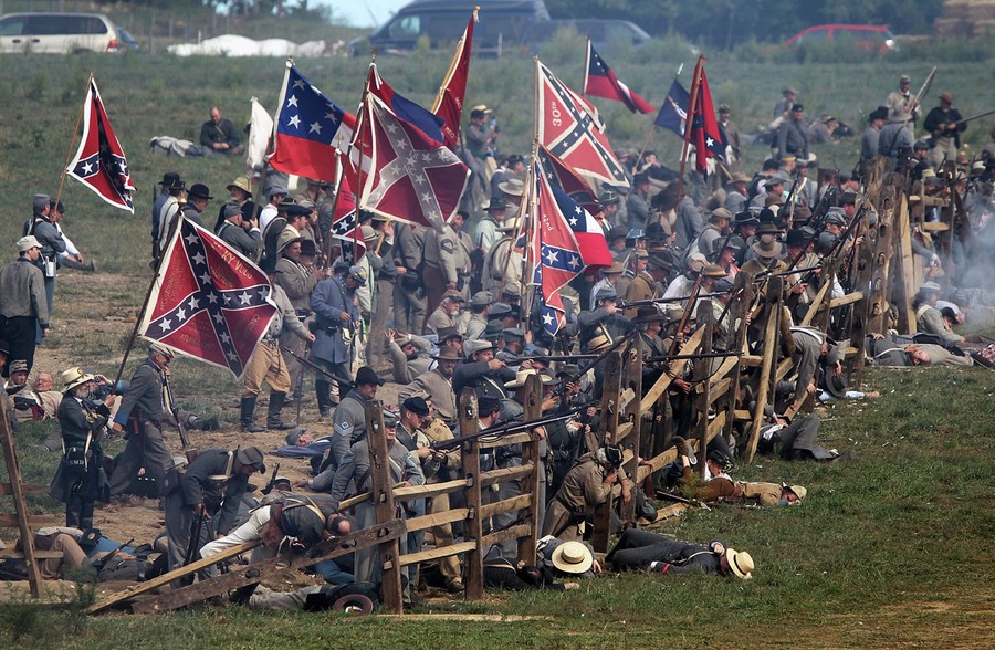 Read moreConfederate infantry re-enactors participate in the Battle of Bloody Lane during an event to mark the 150th anniversary of the Battle of Antietam in Sharpsburg, Maryland, on September 15, 2012. The Battle of Antietam was fought on September 17, 1862 and was the bloodiest battle in American history with more than 23,000 men killed, wounded, and missing in one single day. #