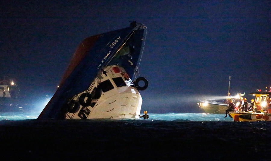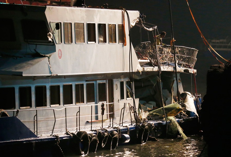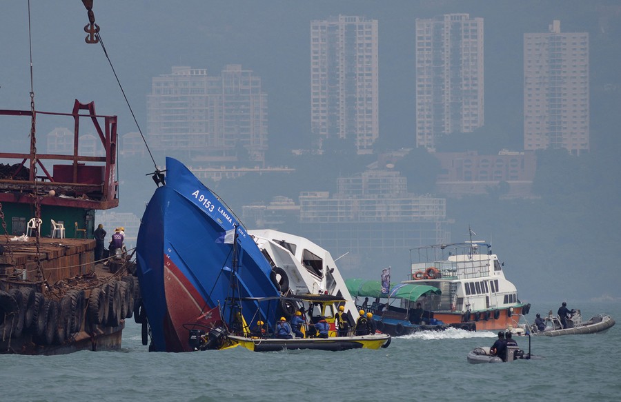 On Monday night, a passenger ferry and a smaller boat collided near Lamma Island, off the southwestern coast of Hong Kong, causing the smaller vessel to partially sink and killing 38 holiday revelers, including five children. The large passenger ferry, called the Sea Smooth, was a company boat taking more than 120 employees of Hongkong Electric Co. and their family members to Victoria Harbor to view fireworks celebrating the mid-autumn festival and China's National Day. Hong Kong police have launched an investigation, arresting six crew members from both vessels today.