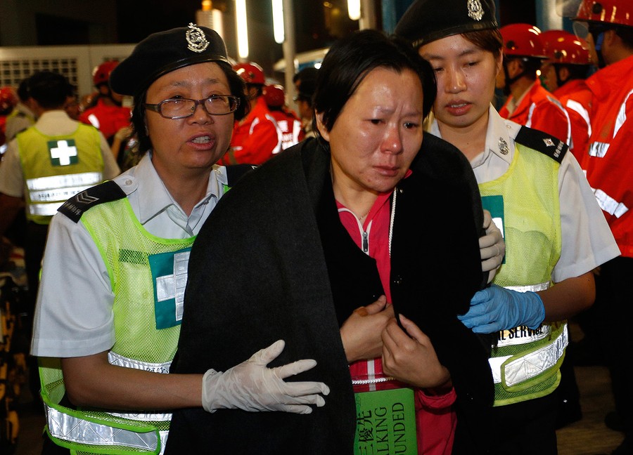 Read moreA relative cries as she leaves a public mortuary holding the bodies of those who died in a boat accident near Yung Shue Wan on Lamma Island, on October 2, 2012 in Hong Kong. #