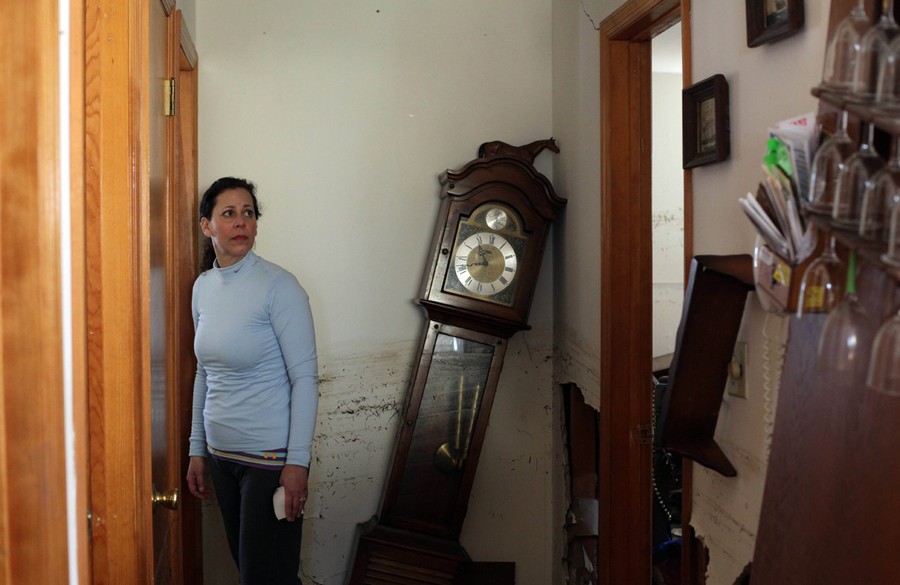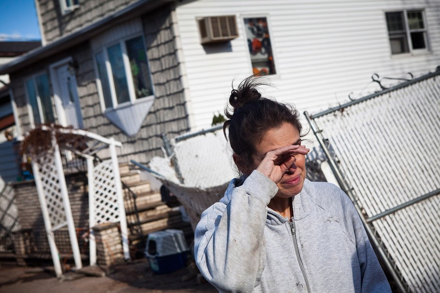 Dr Rosanna Troia breaks down in tears while helping clean out her mother's home in the Midland Beach neighborhood of Staten Island, on November 3, 2012.#