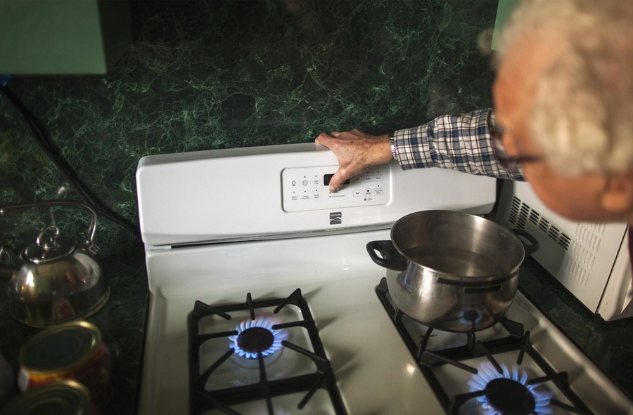 Mac Abrotsky uses his gas stove to heat his 5th floor apartment in a high-rise apartment building that remained devoid of power, heat, and water in the Brighton Beach neighborhood of New York, on November 2, 2012.#