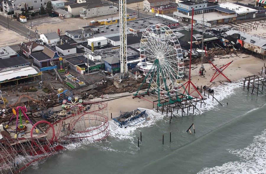 A week ago today, superstorm Sandy powered ashore, making landfall in the U.S. and wreaking havoc across the northeast. Damage estimates now reach as high as $50 billion, which would make Sandy the second-costliest Atlantic hurricane in history. At least 113 lives were lost across 10 states, and more than 1 million people are still without power across New York and New Jersey. Where the damage was worst, aid workers, National Guardsmen, soldiers, and groups of civilian volunteers arrived, bringing supplies, beginning cleanup, providing what was needed -- in many cases, neighbor helping neighbor. Collected here are images of Sandy recovery from just the past weekend, showing what has been accomplished so far and the massive amount of work that remains to be done. See also the earlier entry: Hurricane Sandy: After Landfall.