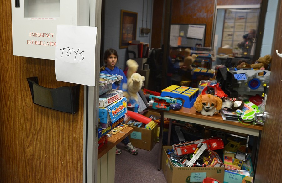 A young girl picks a toy at the municipal center which has been serving as an emergency provisions distribution center in Union Beach, New Jersey, on November 2, 2012. Over 200 homes in a town of only 6,200 residents were destroyed by the storm.#