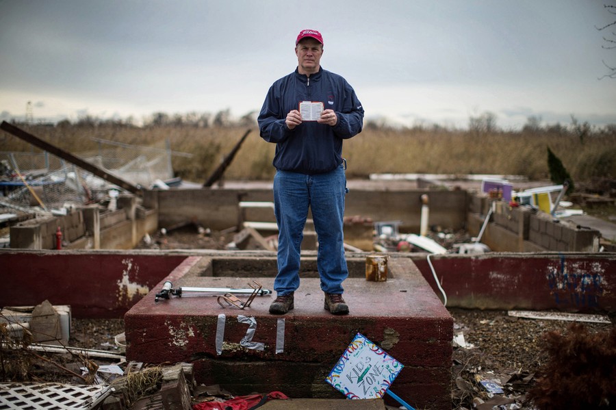 Read morePastor Joseph Paul Morrissey holds his pocket Bible, standing on the ruins of his home in the low-lying Oakwood neighborhood on Staten Island, on November 14, 2012. Morrissey, a general contractor and owner of a small productions company, worked with his fellow parishioners to transform the Grace Bible Church, just steps away, into a relief and aid center for victims of the storm. Despite losing everything, Morrissey and other members the small Christian congregation have worked tirelessly to keep their church open as an aid center. #