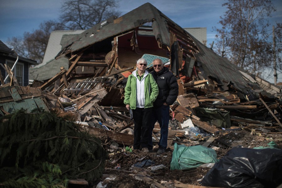 Read moreSheila and Dominic Traina stand amid the remains of the house they had lived in for 43 years which was demolished by Hurricane Sandy in New Dorp Beach, Staten Island, on November 15, 2012. The Trainas now face leaving the neighborhood that Sheila Traina said a friend had called "a poor man's paradise." #