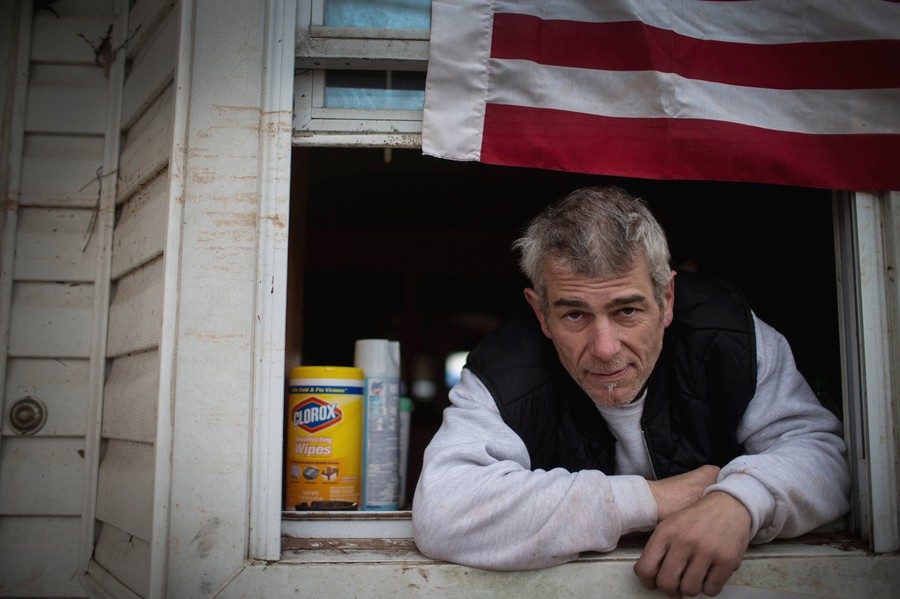Read morePatrick Zoda, a former New York City Fire Department Fire Fighter, leans out the front window of his house in Midland Beach, Staten Island, on November 15, 2012. Zoda, 46, tried to ride out Hurricane Sandy but as waters quickly rose around his one-story home he was forced to escape by wading through neck-deep water to safety. Zoda who plans to rebuild his home said, "It's just like after 9/11... we support each other and this is my home, I'm not going anywhere." #