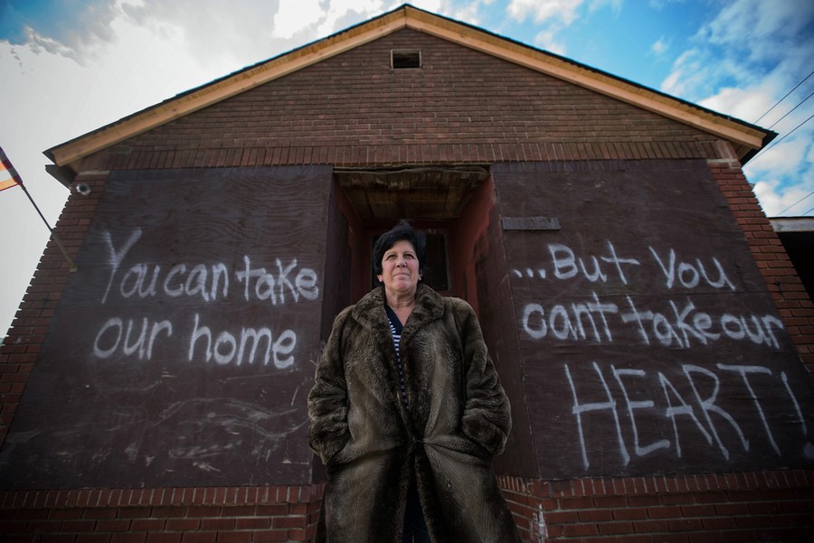 Read moreLinda Restaino stands in front of a message written by her son on the boarded up back wall of her property which was flooded during Hurricane Sandy in New Dorp Beach, Staten Island, on November 14, 2012. Restaino, who has lived at the property for 35 years, is now hoping to leave Staten Island. #