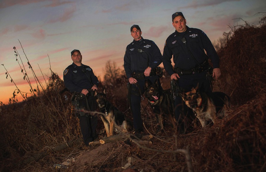 Read moreNew York City Police Department (NYPD) officers (from right) Anthony Compitello, Chris Theofield, and Benjamin Colecchia with their dogs Cesar, Brutas, and Timoshenko, on Staten Island where they and others performed dozens of searches for victims after Hurricane Sandy, on November 14, 2012. Ten NYPD K9 teams answered hundreds of calls to search for residents throughout the five boroughs of New York City. #