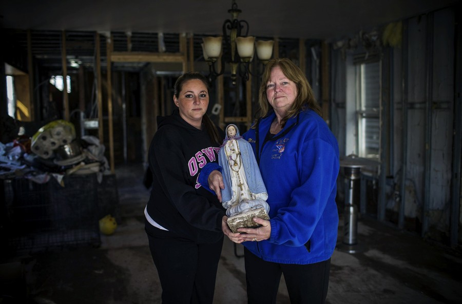 Read moreAlice Lauro and her daughter Margaret hold a statue of the Blessed Mother Mary which was one of the few items to survive intact when their home flooded on Rome Avenue, Staten Island, on November 14, 2012. Lauro and her husband were planning on moving away from Staten Island before Hurricane Sandy struck but now she says, "we would not live anywhere else, the people of Staten Island saved us." #