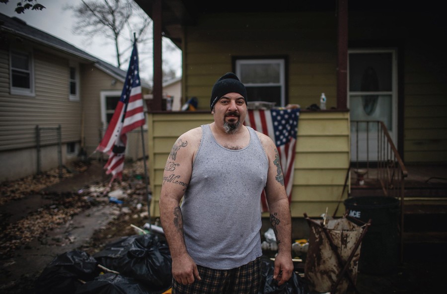 Read moreAnthony Morotto poses for a photograph in front of the home he rents in New Dorp Beach, Staten Island, on November 14, 2012. At the height of Hurricane Sandy, Morotto heard screaming from behind his home, one of only a handful in the area with a second story. He tied a rope to his waist and pulled three neighbors from the flood in through his second story window. #
