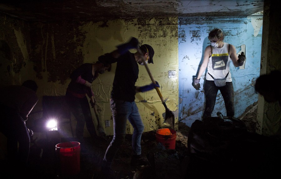 Read moreVolunteers knock on doors at the Sand Castle houses to provide food and supplies to residents who continue to live without power in the Far Rockaways section of Queens, on November 10, 2012. Despite power returning to many neighborhoods in the metropolitan area, residents of the Far Rockaways continue to live without power and heat due to damage caused by Superstorm Sandy. #