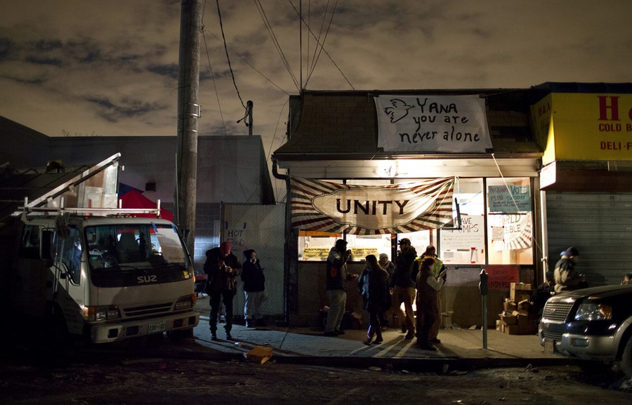 Read moreVolunteers and those seeking assistance stand outside a YANA (You are Never Alone) outreach center, currently housing Occupy Sandy, a volunteer aid organization in the Rockaway Park neighborhood of Queens, on November 8, 2012. Along with other groups, Occupy Sandy has sprung up in an effort to bring goods and services to people left in need in the wake of Superstorm Sandy. #