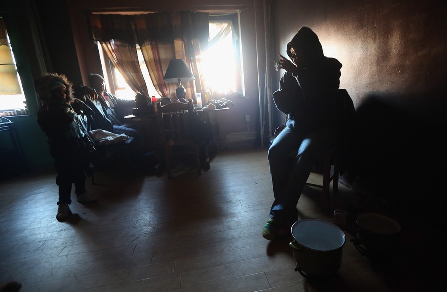 Read moreMac Baker (right) sits near niece Nytaisha Baker (left), next to pots of water she heats on the floor with small flames for a bit of warmth in her unheated apartment without electricity in the Ocean Bay public housing projects in the Far Rockaway neighborhood of Queens, on November 9, 2012. #