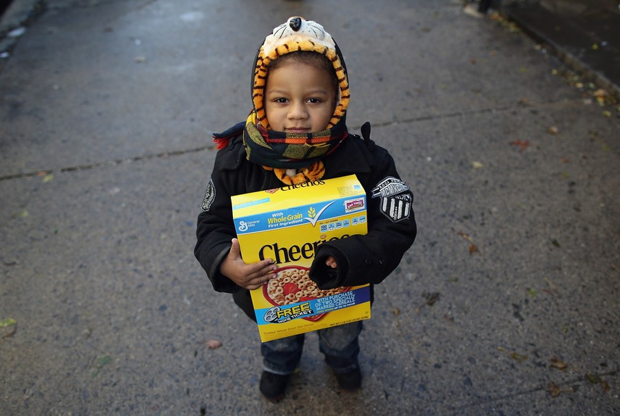 Read moreAlex Vila, 2, carries a box of cereal after visiting an aid station for people affected by Hurricane Sandy in Brooklyn, on November 8, 2012. Household supplies and groceries were distributed to Red Hook neighborhood residents by Catholic Charities at the Visitation of the Blessed Virgin Mary church. #