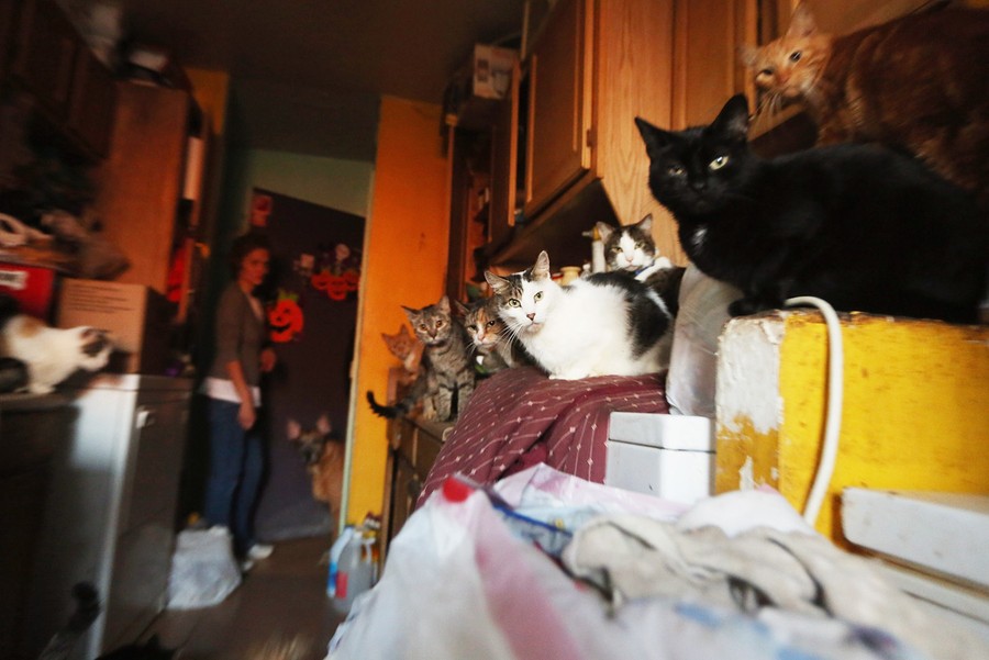 Read moreCommunity pet rescuer Kim Ruiz stands among the cats, five of whom were rescued during Superstorm Sandy, and dogs she currently houses in her unheated apartment without electricity in the Ocean Bay public housing projects in the Far Rockaway neighborhood of Queens, on November 9, 2012. #
