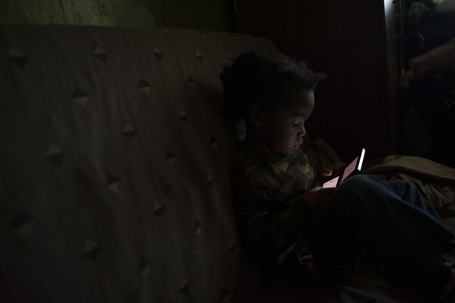 Read moreYoung Jahzier Barksdale is lit by a video game as he plays in the Red Hook Houses in Brooklyn, on November 9, 2012. Residents were entering into a second week without heat or electricity. #