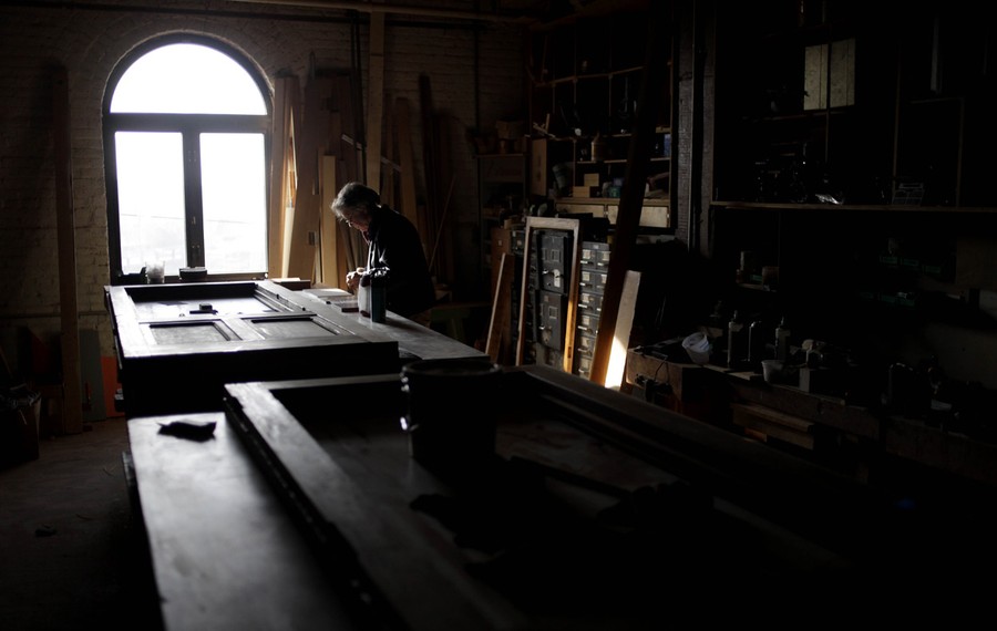Read moreCabinet maker Rick Churchill does a little work by window light at his business in the Red Hook section of Brooklyn, New York, on November 12, 2012. Churchill's studio has been without power since Sandy and much his work depends on machines that need electricity. #