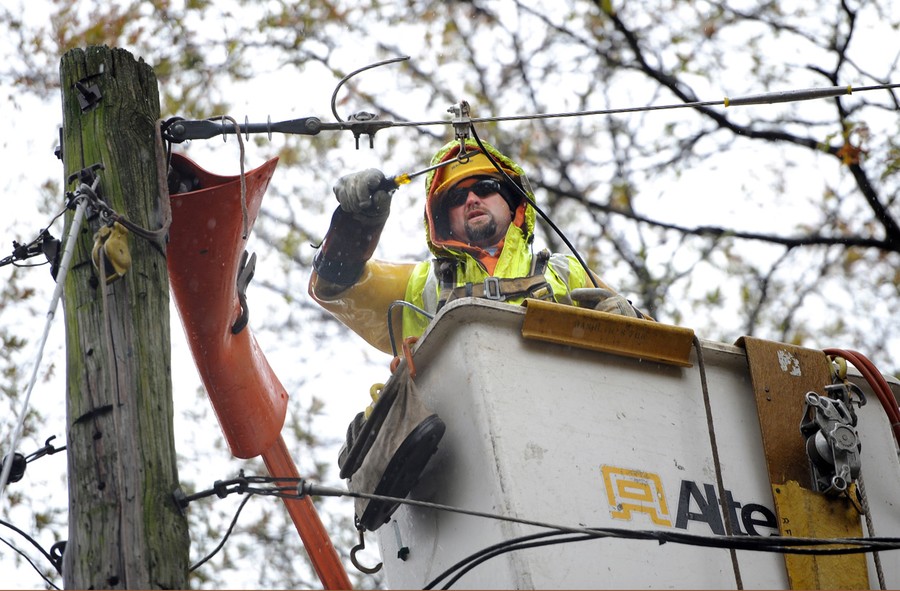 Read moreRick Foite, a lineman with Harlan Electrical Construction from Buffalo, New York, repairs power lines that were brought down from the effects of Superstorm Sandy in Sea Cliff, New York, on November 7, 2012. #