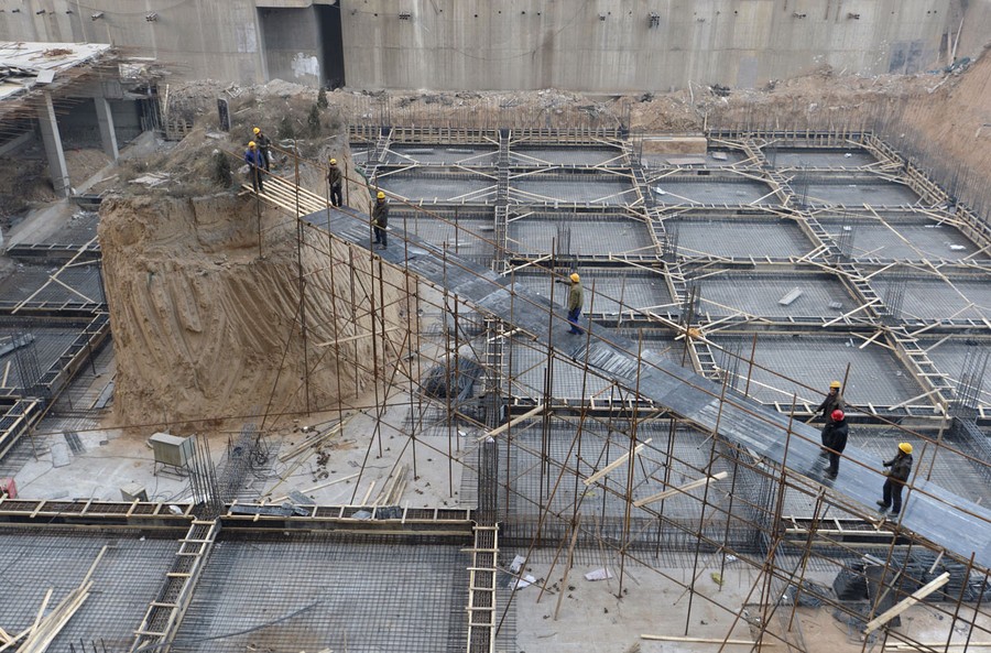 Read moreConstruction workers building around a grave mound 10 meters high, at a construction site in a village in Taiyuan, China, on December 6, 2012. The owner of the grave and the construction consortium are arguing over compensation to be paid. #