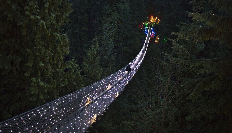 Read moreVisitors walk across the Capilano Suspension Bridge decorated in Christmas lights in North Vancouver, British Columbia, on December 10, 2012. Originally built in 1889, the bridge stretches 135 meters across and 70 meters above the Capilano River. #