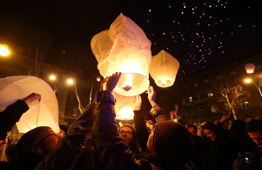 Read moreCroatians gather in front of a museum in Zagreb as they participate in an initiative by local artist Kresimir Tadija Kapulic to release Chinese sky lanterns with people's Christmas and New Year's wishes, on December 20, 2012. #