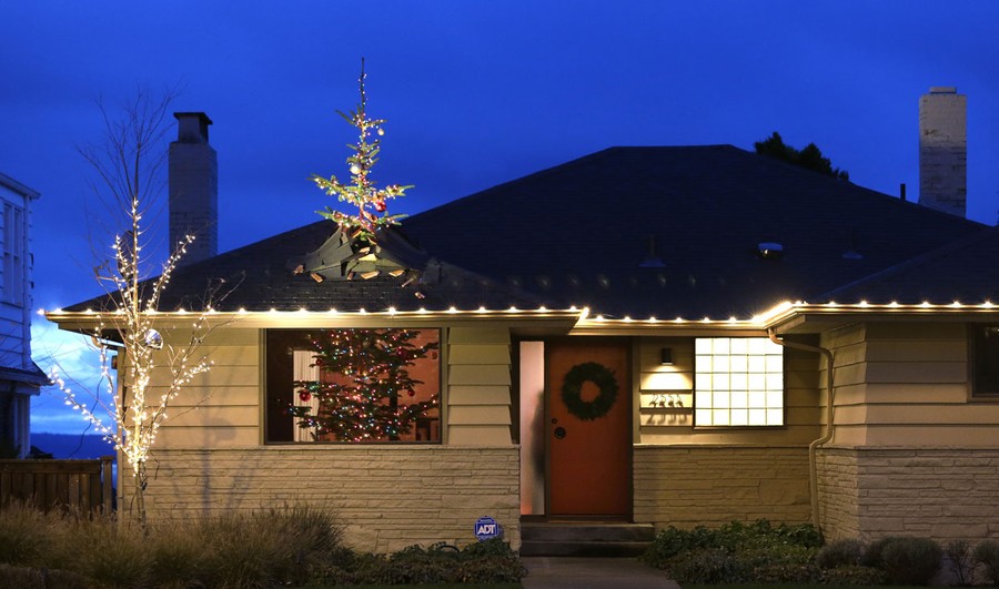 Read moreA 14-foot Christmas tree appears to be crashing through the roof of a one-story house in Seattle's Magnolia neighborhood, on December 20, 2012. Homeowner Patrick Kruger created the illusion of the tree crashing through the roof by cutting a 14-foot tree into two pieces and attaching the top six-foot section is to a piece of plywood that's bolted to the roof. #