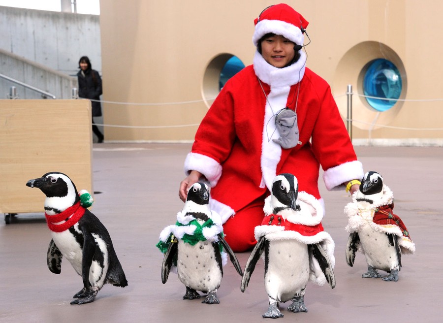 Read moreCape penguins and an aquarium keeper dressed in Christmas themed costumes take part in a Christmas event at the Hakkeijima Sea Paradise aquarium in Yokohama, suburban Tokyo, on December 19, 2012. #