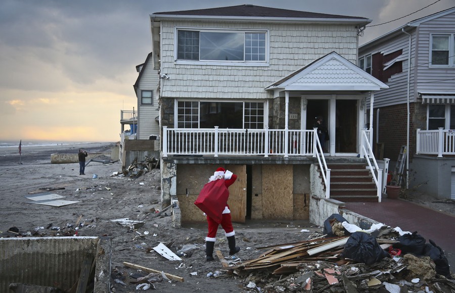 Read moreMichael Sciaraffo, costumed as Santa Claus, makes a toy delivery to a home in the Bell Harbor neighborhood of New York, on December 18, 2012. Using Facebook, Sciaraffo started a charitable enterprise to collect and personally deliver toys to children affected by Superstorm Sandy, dressed as Santa. #