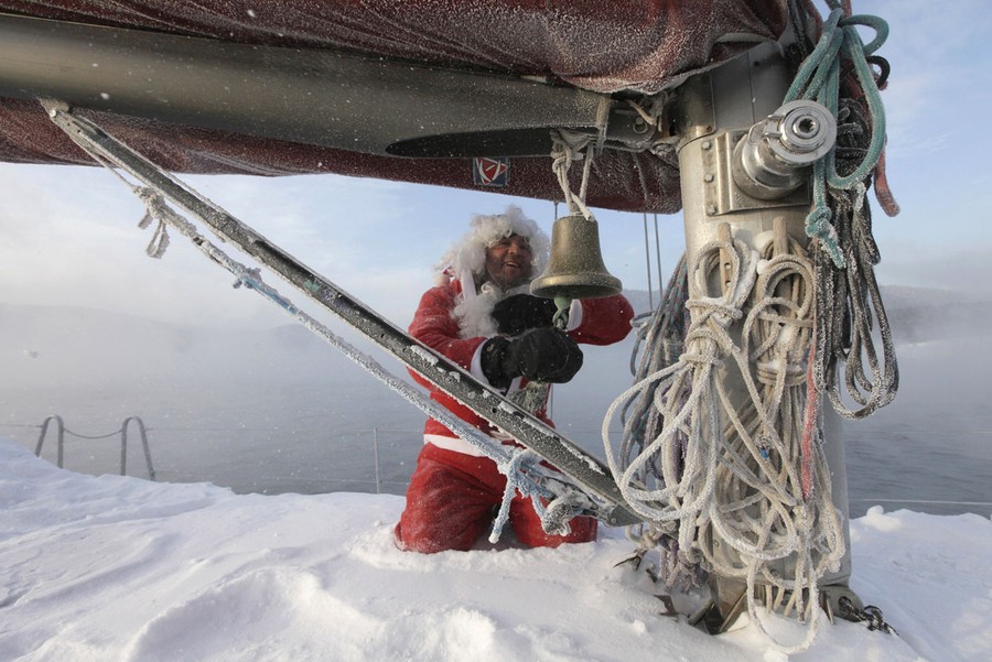 Read moreValery Kokoulin, 47, dressed as Santa Claus, rings a bell on his self-made yacht to mark the ending of the sailboat season, as the air temperature dropped to minus 23 degrees of Celsius (minus 9.4 degrees Fahrenheit), on the Yenisei River, outside Russia's Siberian city of Krasnoyarsk, on December 7, 2012. #