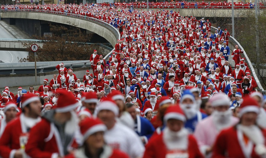 Read moreRunners dressed in Santa Claus outfits compete in the Santa Dash in Liverpool, England, on December 2, 2012. Over 8,000 people were expected to compete in the annual event which is run over a 5km course. #