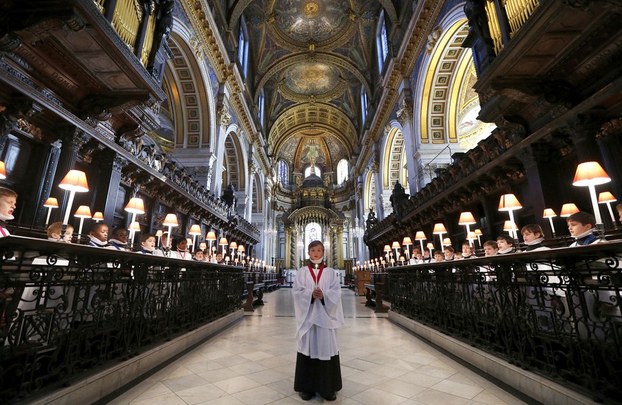 Read moreHarry Jackson, 13, the head chorister at St Paul's Cathedral School sings Christmas carols inside the Cathedral in central London, on December 10, 2012. Christmas is a busy time of year for the choir who will sing to over 20,000 people over the season. #