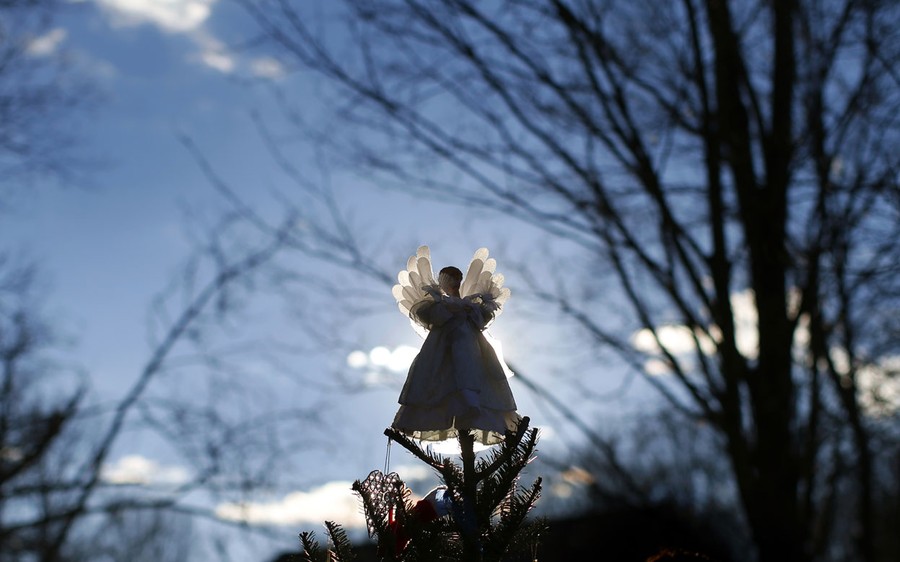 Read moreAn angel sits atop a Christmas tree in a growing makeshift memorial for the victims of the December 14 shootings at Sandy Hook Elementary School in Newtown, Connecticut, on December 19, 2012. #
