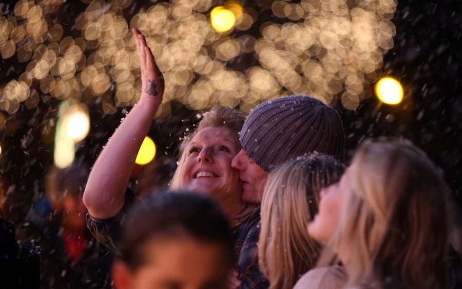 Read morePeople react to a snow machine as they gather to look at Christmas lights that adorn a house in Melksham, England, on December 8, 2012. The lights, a popular festive attraction, have returned to the town after a two-year absence and have raised thousands of pounds for charity for a local hospice, Dorothy House. #