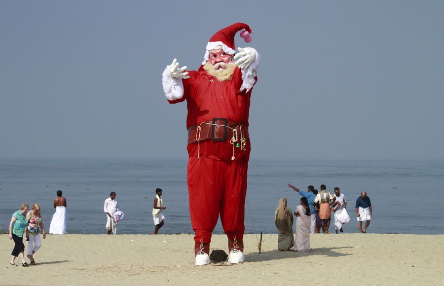 There are only a few days left until Christmas, and Santa Claus and his many helpers have been busy around the globe. From London to Tokyo, from the Ivory Coast to Los Angeles, people are out enjoying the winter weather, shopping for loved ones, visiting Santa, and taking part in pageants in anticipation of the big day. This collection is a quick tour of many different Christmas celebrations. Merry Christmas, everyone! The next photo essay here will be posted on Wednesday, the 26th.