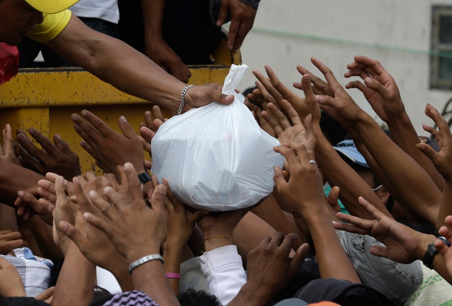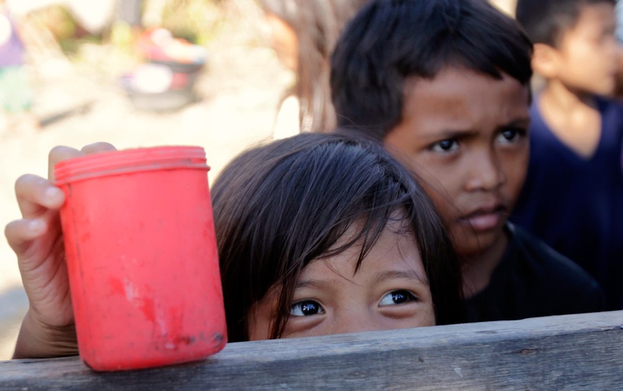 Read moreChildren wait for free porridge distributed outside an evacuation center for residents who were rendered homeless after their houses were swept by floodwaters at the height of Typhoon Bopha, in New Bataan Town, on December 8, 2012. #