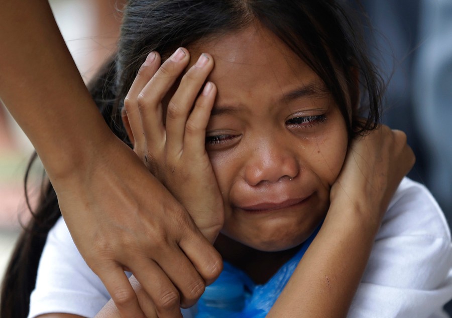 Read moreA girl is comforted upon seeing the sealed coffin of her relative at a damaged public market which now serves as a makeshift mortuary for typhoon Bopha's victims at New Bataan township, on December 8, 2012. #