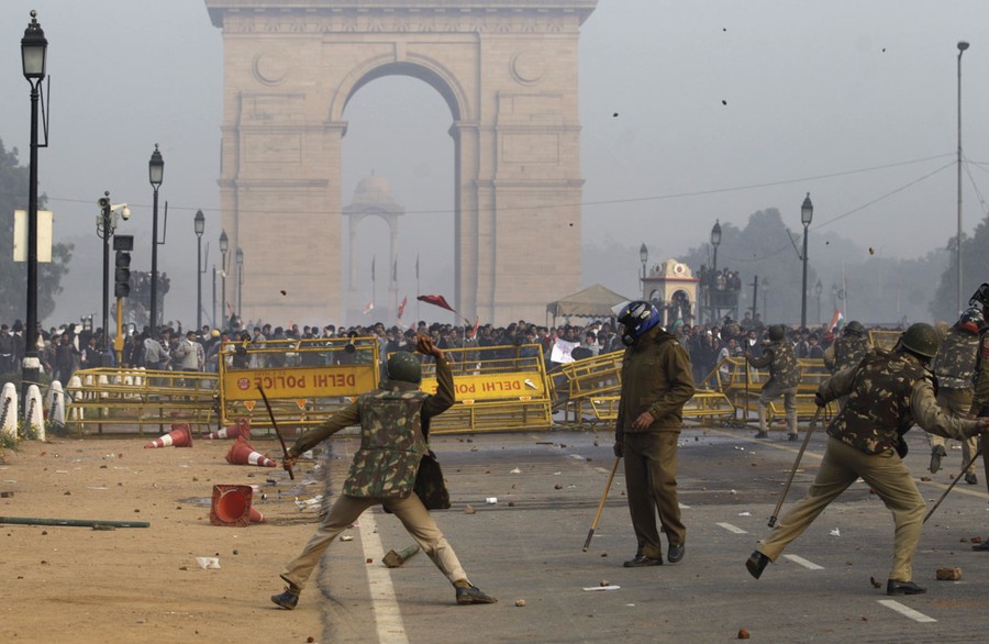 Last week, in New Delhi, India, news stories of a horrific gang rape spread quickly, igniting widespread outrage. A 23 year old woman was attacked by six men on a moving bus and brutalized for 45 minutes, in the most recent and alarming of several high-profile incidents. Protesters have taken to the streets to demonstrate against the growing incidence of rape, and its slow and ineffective prosecution. Riot police have responded, dispersing crowds with forceful tactics including water cannons, batons, and tear gas. India's government has now ordered a special inquiry into the incident to identify any negligence or errors on the part of police.