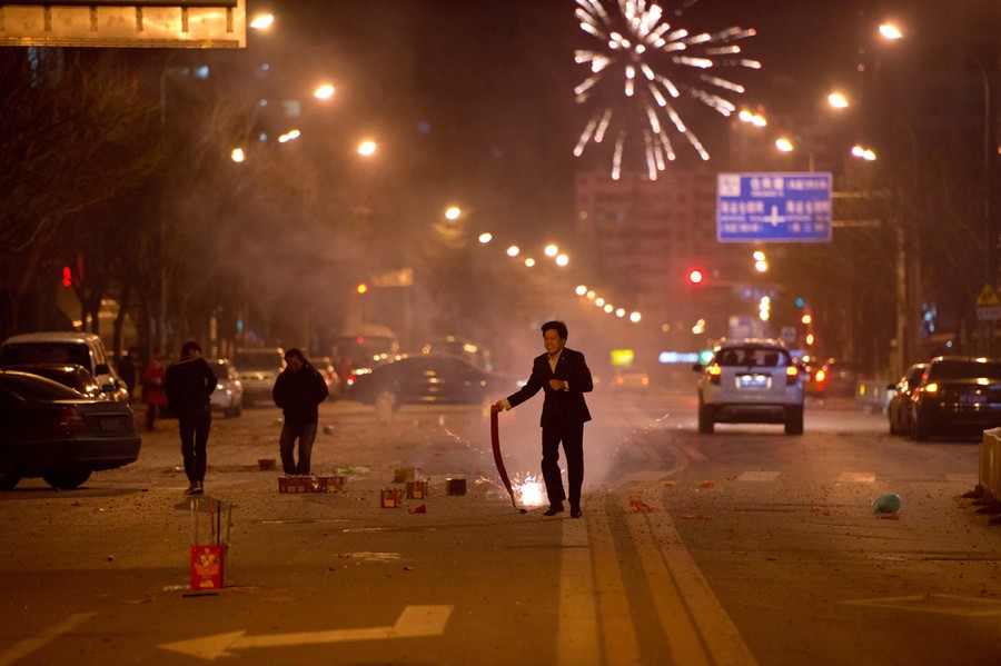 Read moreA man watches as fireworks light up the skyline of Shanghai in celebration of Chinese New Year in Shanghai, on February 10, 2013. The Lunar New Year, or Spring Festival, begins on February 10 and marks the start of the Year of the Snake, according to the Chinese zodiac. #