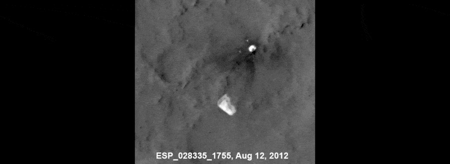 Read moreThis sequence of seven images from the HiRise camera on NASA's Mars Reconnaissance Orbiter shows wind-caused changes in the parachute of NASA's Mars Science Laboratory spacecraft as the chute lay on the Martian ground during months after its use in safe landing of the Curiosity rover. The parachute canopy is the bright shape in the lower half of each image. Suspension lines still attach it to the spacecraft's back shell, which is the bright shape in the upper half of each image. The length of the parachute, including the lines, is about 165 feet (50 meters). #