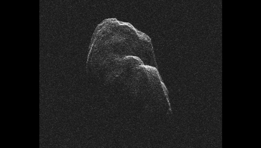 Read moreA radar data image of asteroid Toutatis, generated with data collected using NASA's 230-foot-wide (70-meter) Deep Space Network antenna at Goldstone, California, on December 12, 2012. On December 12, the day of its closest approach to Earth, Toutatis was about 18 lunar distances, 4.3 million miles (6.9 million km) from Earth. The radar data images indicate that it is an elongated, irregularly shaped object with ridges and perhaps craters. Along with shape detail, scientists are also seeing some interesting bright glints that could be surface boulders. The asteroid rotates about its long axis every 5.4 days and precesses (changes the orientation of its rotational axis) like a wobbling, badly thrown football, every 7.4 days. #