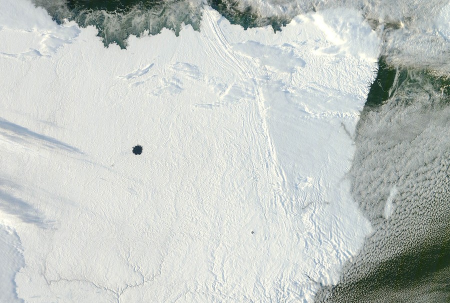 Read moreWhen NASA's Aqua satellite passed over northern Quebec on November 25, 2012, winter snow and ice had transformed the pockmarked landscape of Ungava Peninsula into a seemingly endless expanse of white. However, two near-perfect circles remained stubbornly free of ice. Those ice-free areas are Pingualuit and Couture craters. Both craters were formed millions of years ago by meteorites striking the Earth's surface, and today they hold deep lakes. Couture is approximately 8 km #