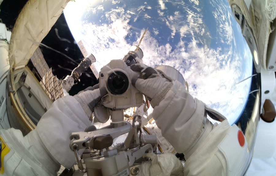 Read moreExpedition 33 Flight Engineer Akihiko Hoshide takes a picture of his reflective helmet visor while participating in a 6-hour, 38-minute spacewalk outside the International Space Station, on November 1, 2012. Various parts of the space station and much of the blue and white Earth below are mirrored in his visor. During the spacewalk, Expedition 33 Commander Sunita Williams and Hoshide ventured outside the orbital outpost to perform work and to support ground-based troubleshooting of an ammonia leak. #