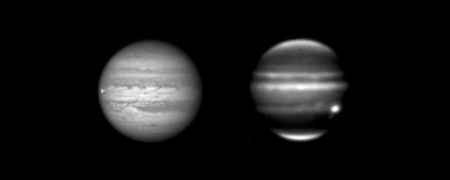Read moreJupiter has been suffering more impacts over the last four years than ever previously observed, including this meteoroid impact on September 10, 2012. The left-hand image was taken from a red-filtered video by amateur astronomer George Hall of Dallas, Texas, on September 10 and processed by Ricardo Hueso (University of the Basque Country, Bilbao, Spain). The right-hand image is an infrared image from NASA's Infrared Telescope Facility on Mauna Kea, Hawaii, taken on September 11. Scientists compare the visible-light images to the infrared images to learn about the fireball's disruption of the Jovian atmosphere. In this case, the infrared view reveals no long-term disturbance. Scientists think the fireball was caused by an object less than 45 feet (15 meters) in diameter. #