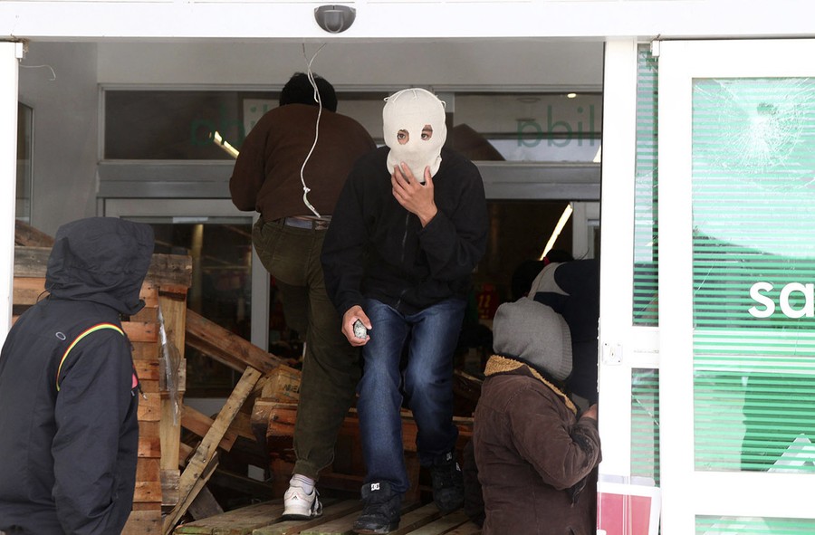 Read moreA masked looter walks leaves a supermarket in the Argentine city of San Carlos de Bariloche, on December 20, 2012. About 150 masked people looted a supermarket after breaking its windows, gates and perimeter surrounding the area, according to local media. The looters stoned the police who retaliated with tear gas. #